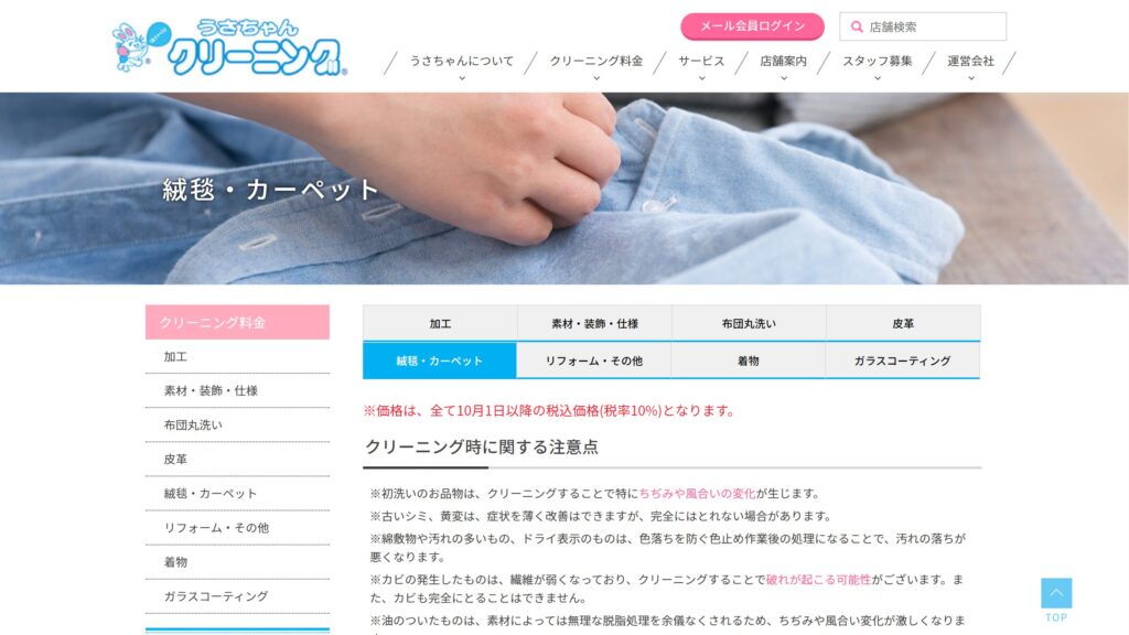 さらに、年会費300円で「うさちゃんクリーニング特別会員」に登録すると、年間を通じて全品5%OFF、誕生日月には半額サービス、リサイクルバッグのプレゼントなど、特典が充実しており、割引サービスに力を入れている点が特徴です。